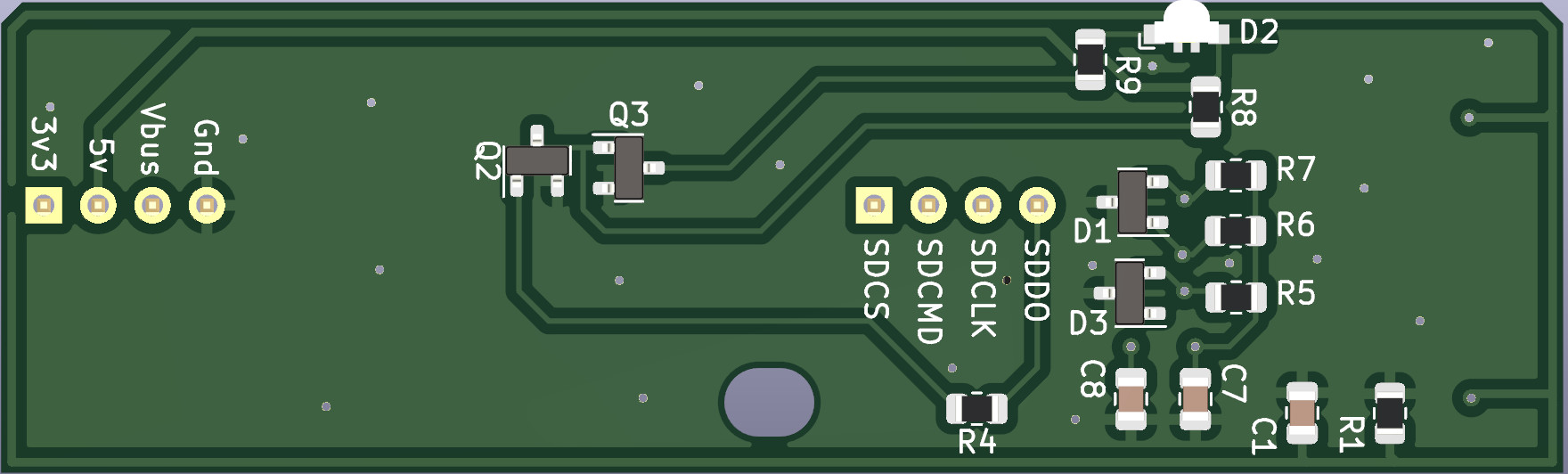 Светодиод D2 на модуле загорается в случае успешного подключения карты памяти в систему.