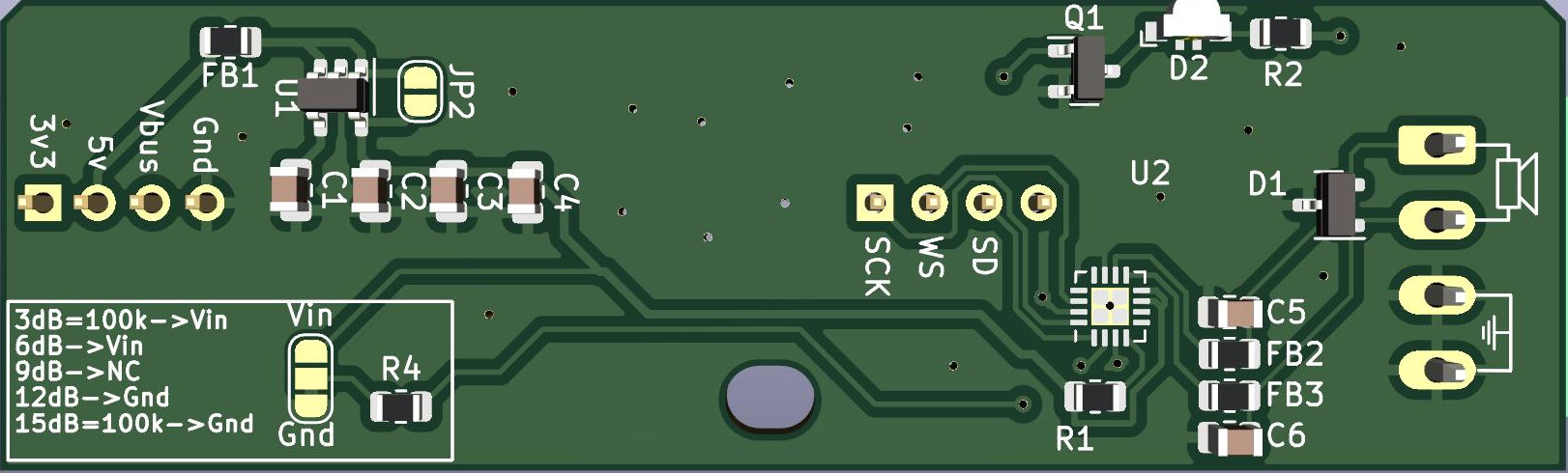 Модуль предназначен для воспроизведения аудио сигнала. Построен на микросхеме MAX98357AETE+T, со встроенный ЦАП и усилителем класса D.